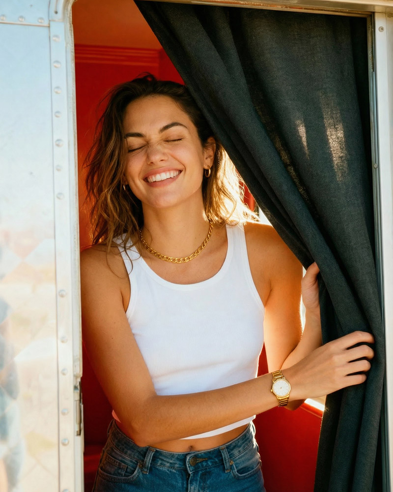 Découvrez quelques exemples de mises en avant publicitaires avec notre modèle virtuel Natalya présenté ci-dessus. Produits, lieux, ambiances : chaque scène est pensée pour offrir un rendu réaliste, esthétique et engageant, parfaitement adapté aux codes d’Instagram.