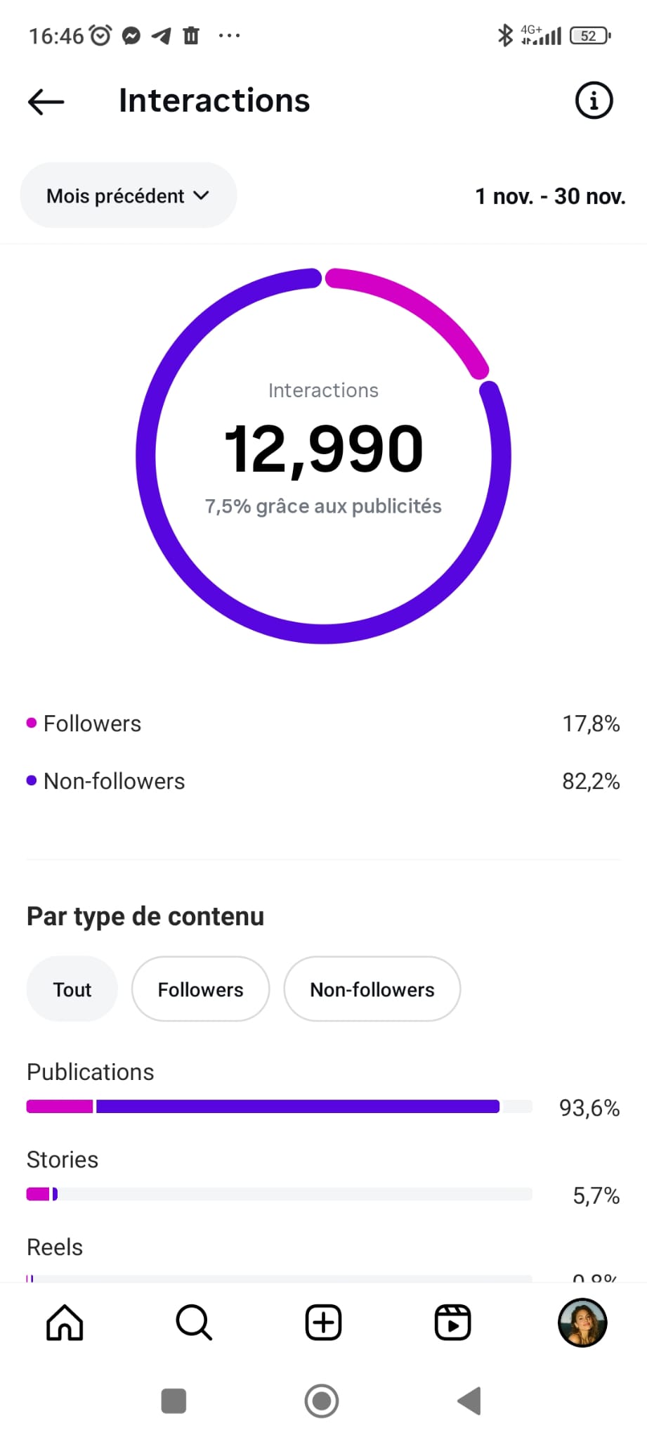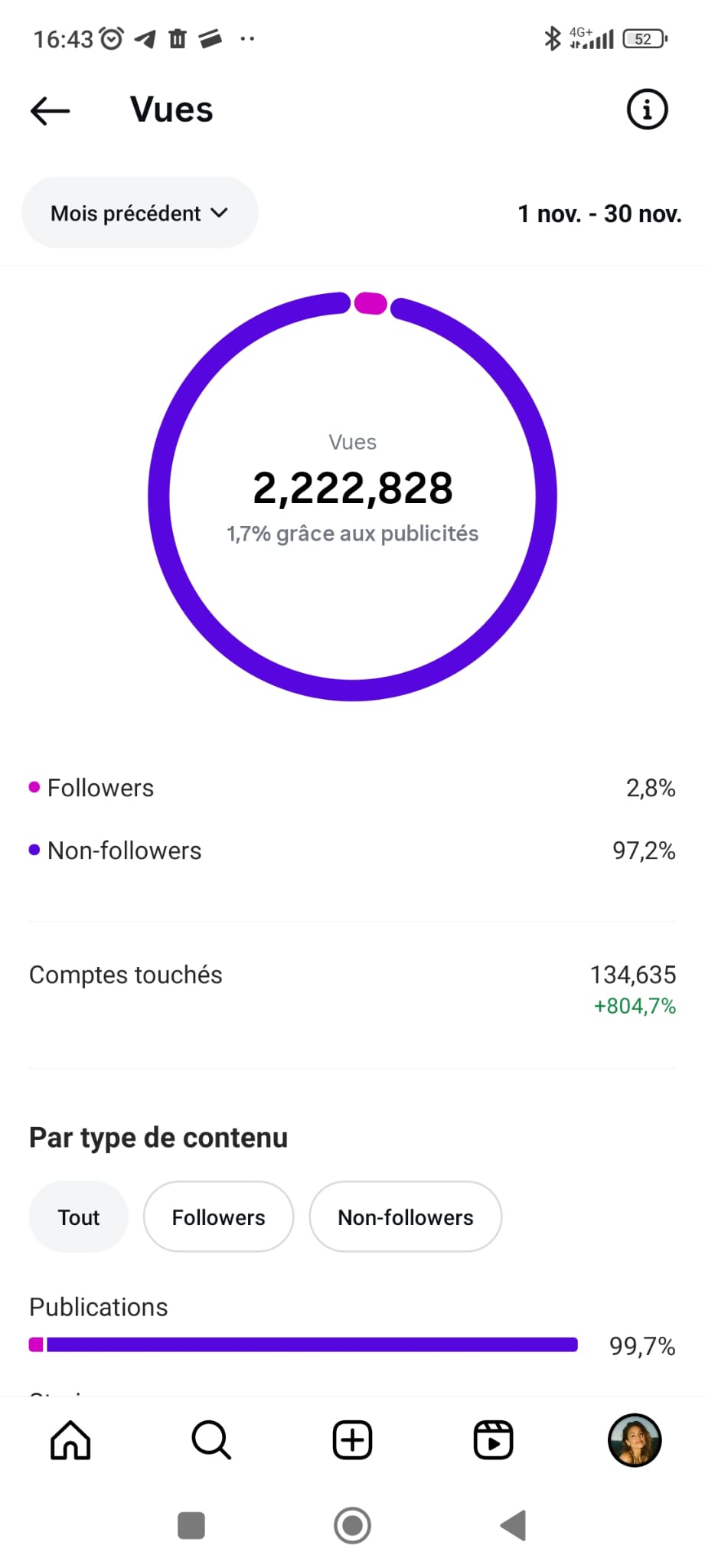 Soit un taux de portée naturelle (sans budget publicitaire) exceptionnel, la moyenne étant de 30 à 40%.